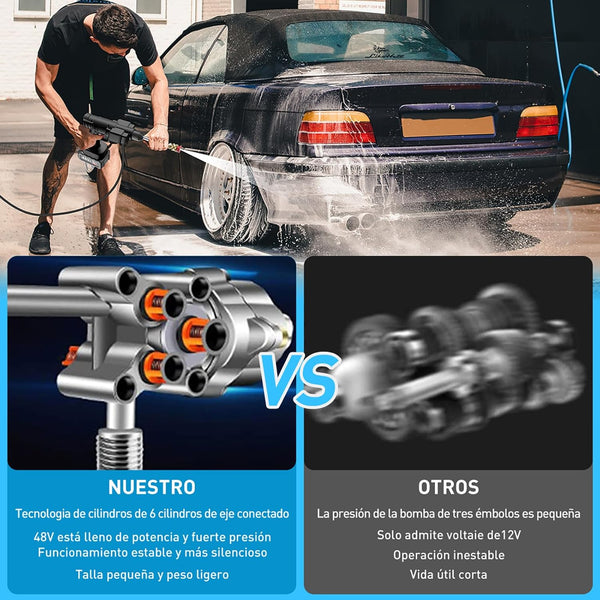 Nuestra hidrolavadora ofrece movilidad total, limpieza potente y facilidad de uso, superando a otros productos que dependen de cables o mangueras complicadas.